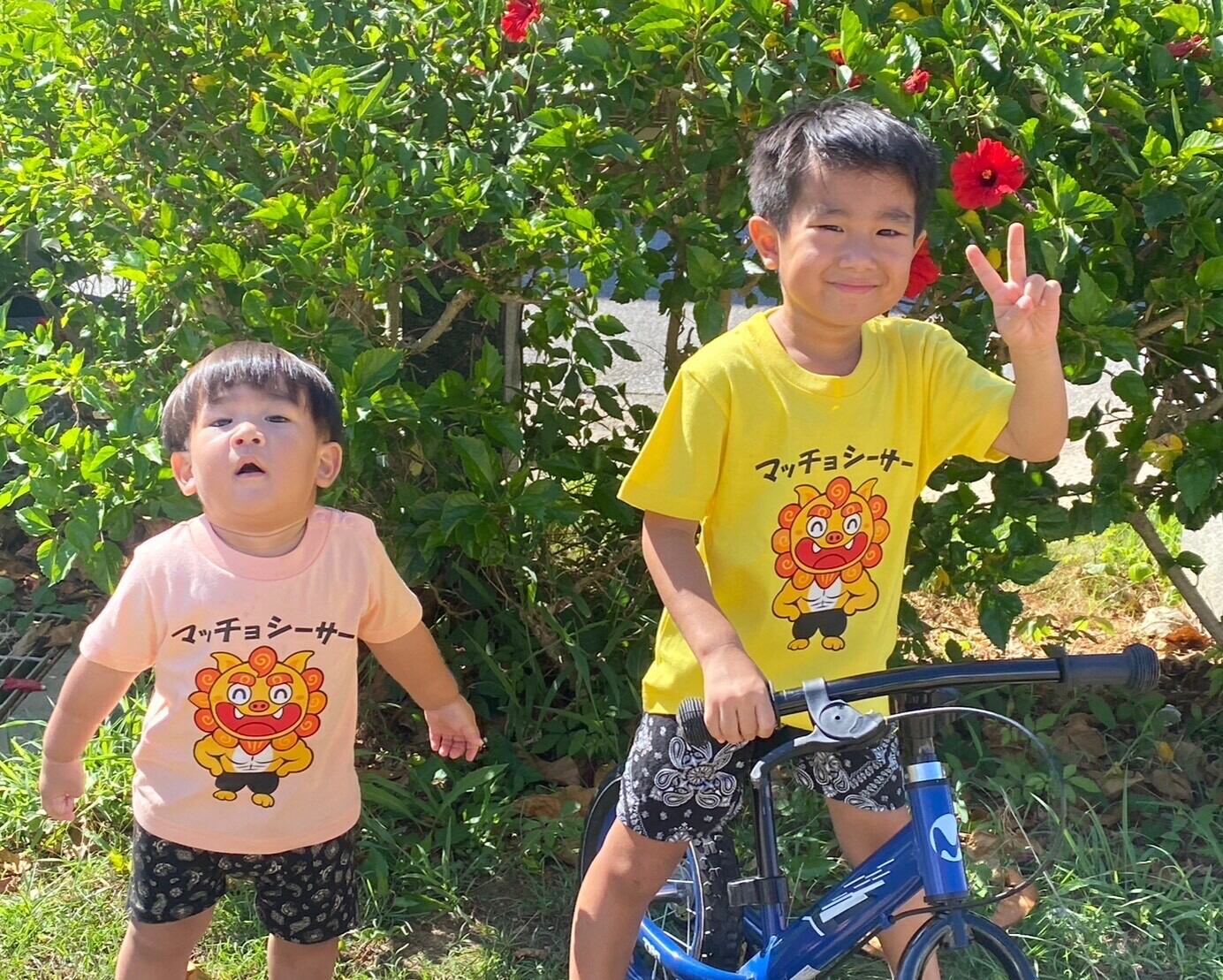 これらを1つにしたのがマッチョシーサーTシャツです。これを着てご家族みんなで笑顔になってもらえると嬉しいです。